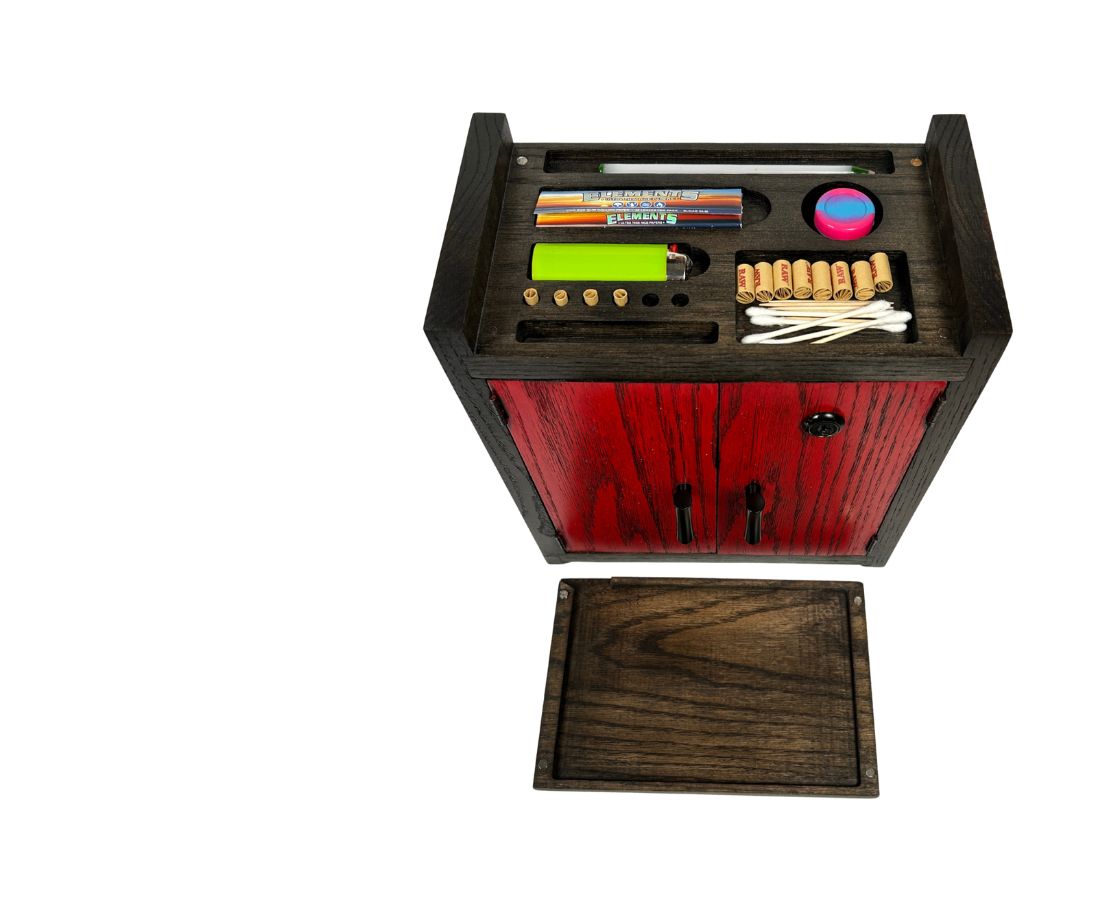 Handcrafted Wood Stash Box Cabinet Kit with 3 Magnifying LED Jars