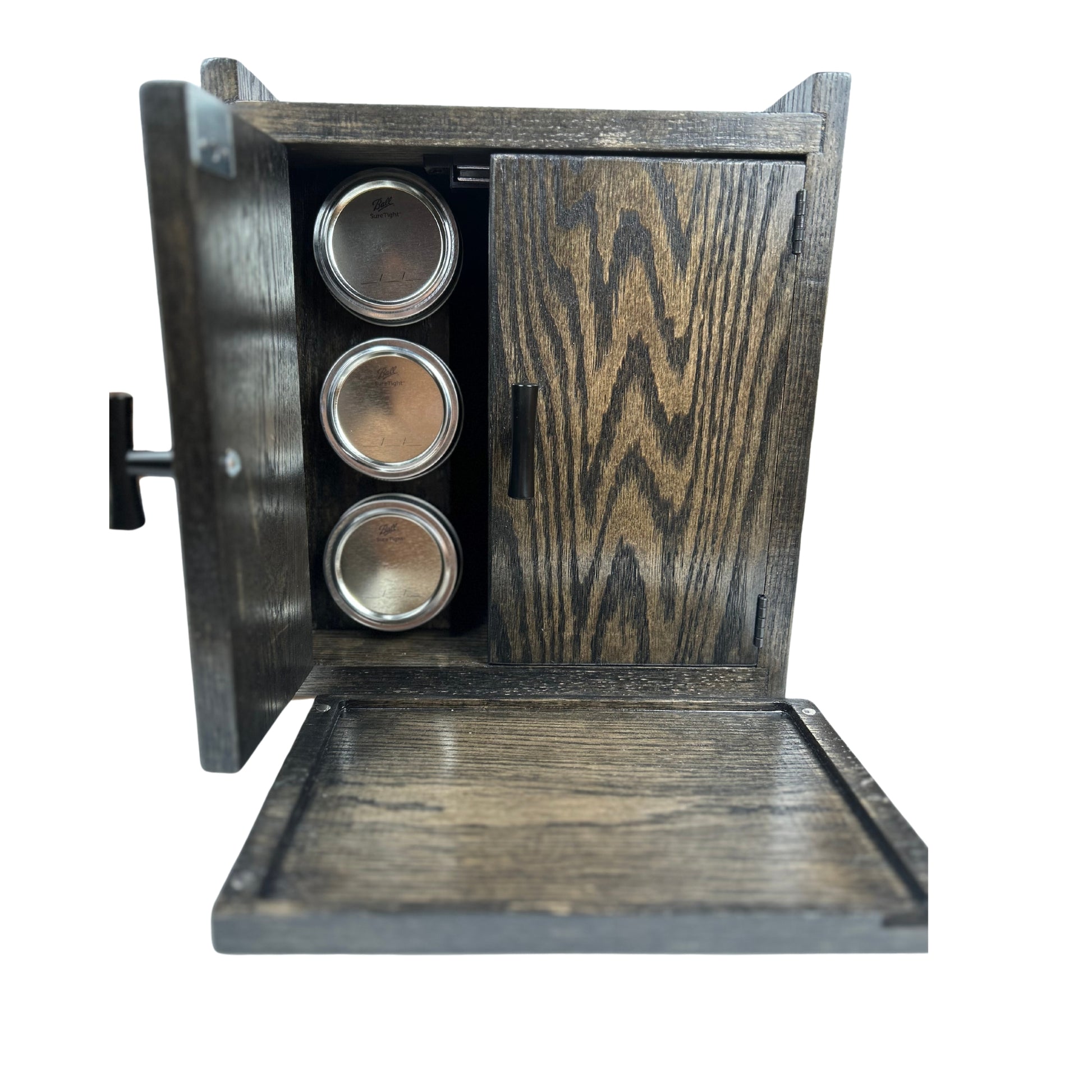 Keep your herbs and botanicals, neat, organized, and stylishly stored with this handcrafted wooden stash cabinet kit. Designed for discreet home storage, it blends seamlessly with your decor while giving you quick access when needed.